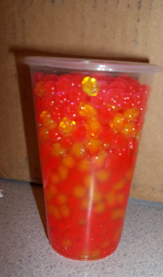 This is what the beads look like when I originally put them in water, I then realized “I didn’t use enough water! AHH!” and that was an hour later. That was when they looked like this. It was still interesting to experiment, even if I messed up royally. Go me!