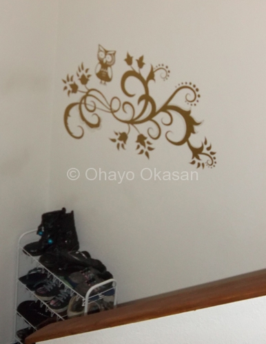 In the end I chose the decal you can see below. It’s even in a shiny goldish color to match the hanging lamp in our doorway!