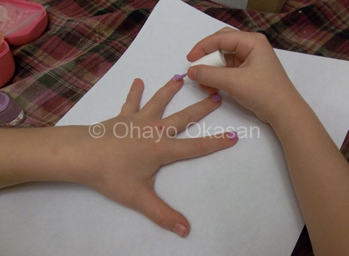 I was thrilled to find that the nail polish, since it is water based, doesn’t smell but still works very well. She actually ended up using the purple on Aussie’s toes and it lasted for a fair few days!