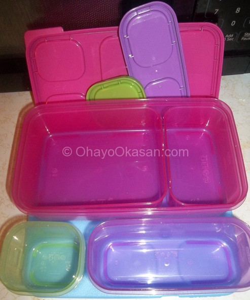 I love how the containers are just the right sizes for all our needs, not only that but the lids are leak-proof but easy enough even for Lisi to open! No struggling with opening any of them! As you can see above I didn’t make use of the side container on the first day, but put her juice box on top of the Blue Ice tray in order to keep it cool during the day. The small sauce container held some Hi-chew (Japanese Candy) as a special little treat.