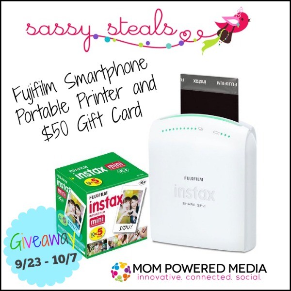 One winner will receive a $50 SassySteals Gift Certificate and Fujifilm Instax Share Smartphone Portable Printer.
