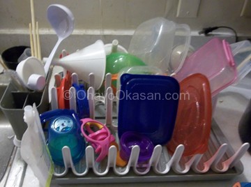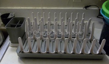 There are four rows of tines, each one is removable, and having four of them really does help me keep our smaller Japanese plates standing up to dry, they didn’t do that very well in the old one. Which… I should have taken a picture of. Oops?