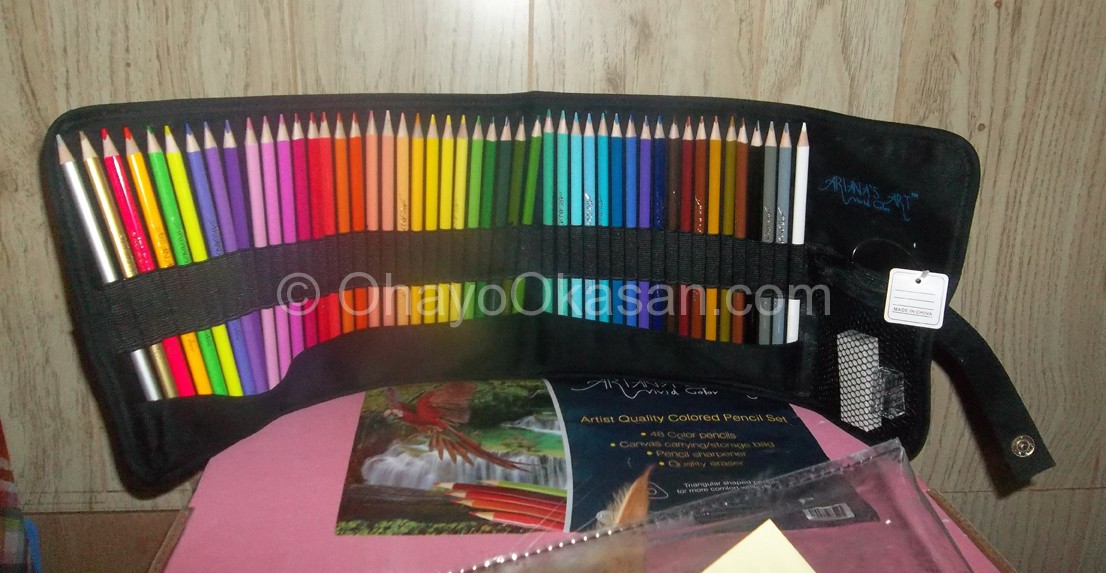 This 48 count set of colored pencils comes with a snap closure carrying pouch, white plastic eraser and a pencil sharpener. Everything you need to get going with coloring with Ariana’s Art colored pencils. You can purchase the colored pencils on Amazon at a great price, and Prime members of course get free two day shipping!