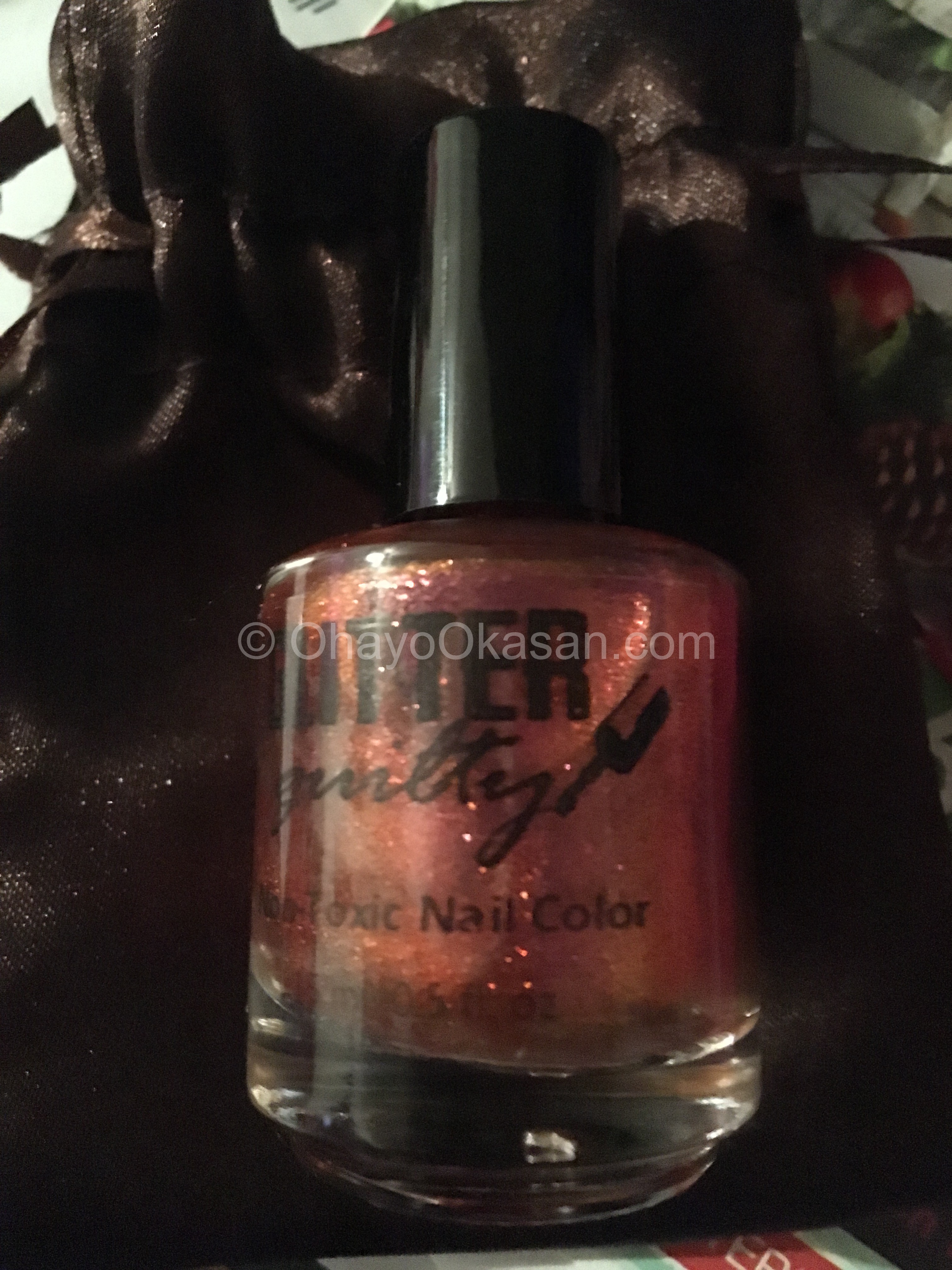 All the polishes in Glitter Guilty are actually made by the box owner, Tammi, which is awesome because these are some awesome polishes that you can even have customized! This month of course I didn’t get something custom made because I am a reviewer, so we usually get sent whatever we get sent. That’s actually okay, because the color this month was a perfect color for my mom. So I gave it to her for her birthday. I did keep the mini-polish, a beautiful blue… because you know me and blue. Totally in love there.
